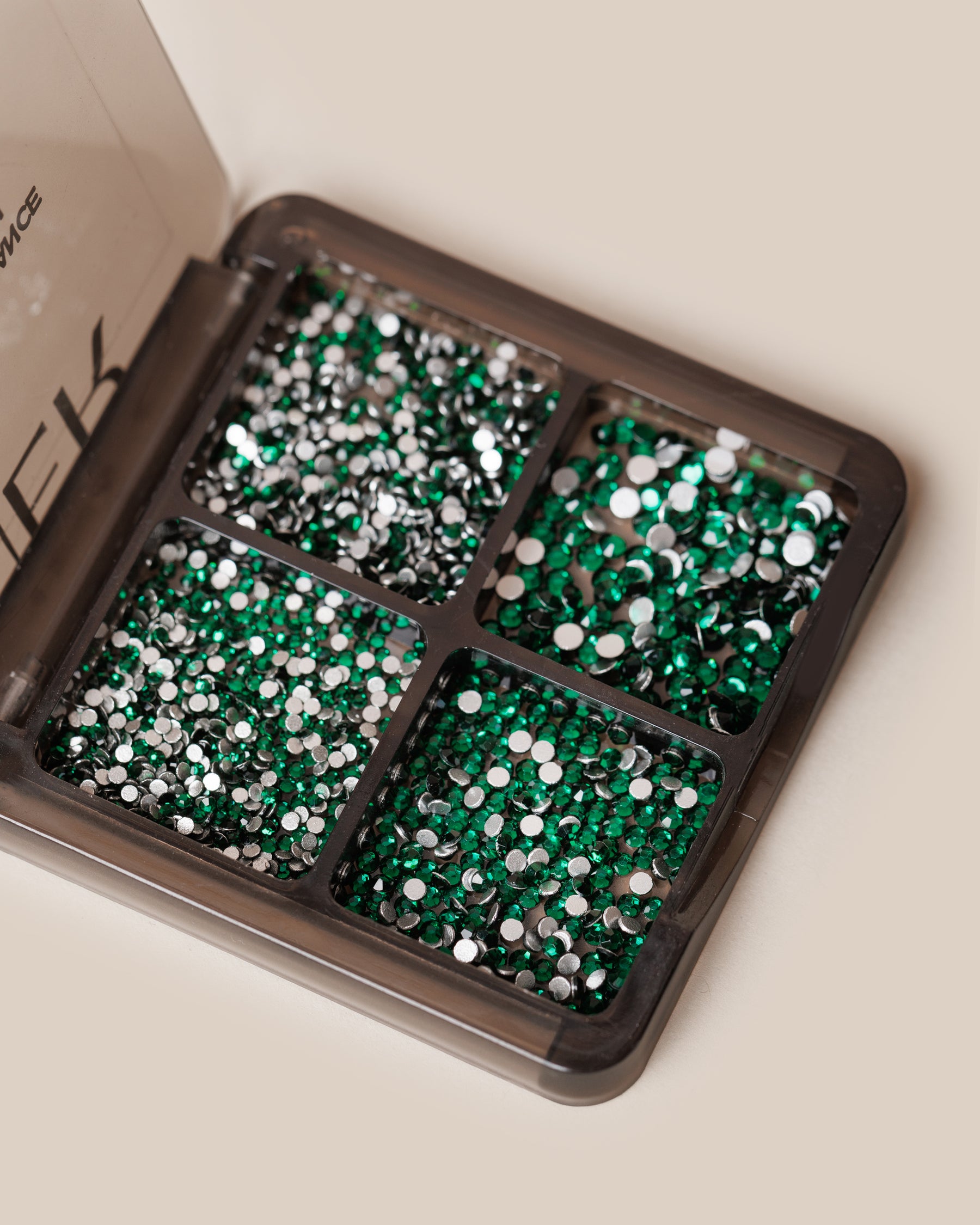 Pietre verde smarald de cea mai înaltă calitate, cu tăieri precise, pentru o strălucire clară, luminoasă, care amintește de pietrele prețioase reale.