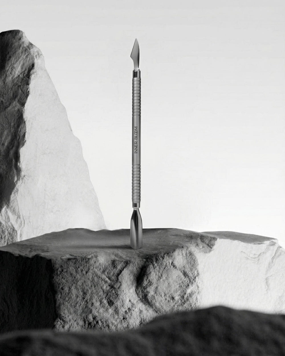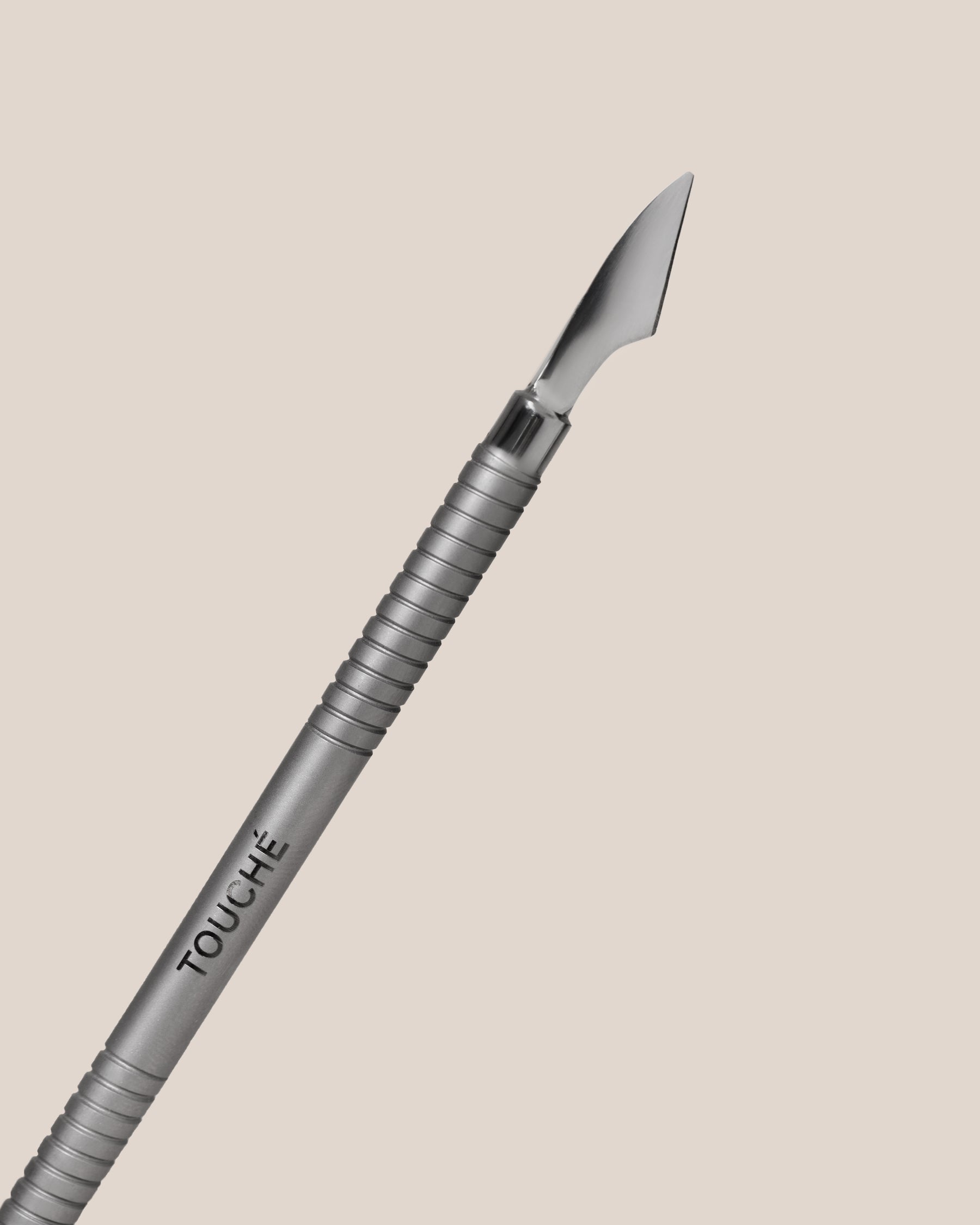 • 🔹 Capăt ascuțit – perfect pentru îndepărtarea membranei invizibile de pe placa unghială sau pentru corectarea detaliilor fine în timpul procesului tehnic.